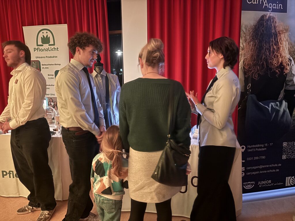 Am 9. Dezember 2025 fand der traditionelle Weihnachtsmarkt der Lenné-Schule statt – und auch CarryAgain war mit einem eigenen Stand vertreten. In der Mensa präsentierten über zehn Projekte ihre Ideen und Produkte. Gemeinsam mit den JUNIOR-Unternehmen PlanzLicht und DiningWood stellten wir unser neu gegründetes Unternehmen vor.